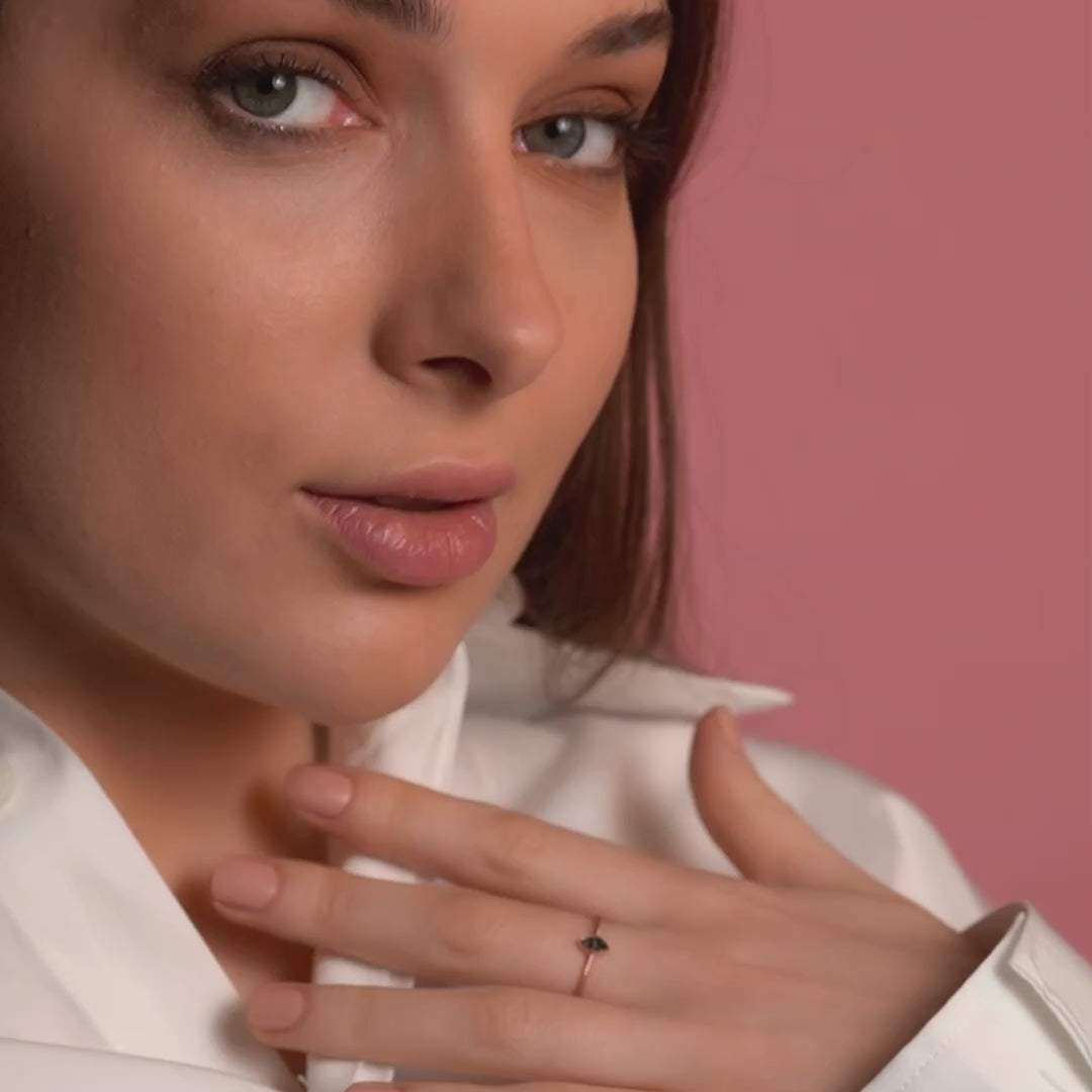Rare to find. Simple and elegant. Add to your stacking collection or wear solo. Black diamonds set with black rhodium accent and your flavor of gold. Easy to stack or wear solo.